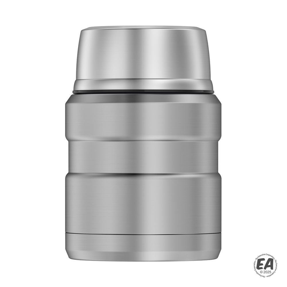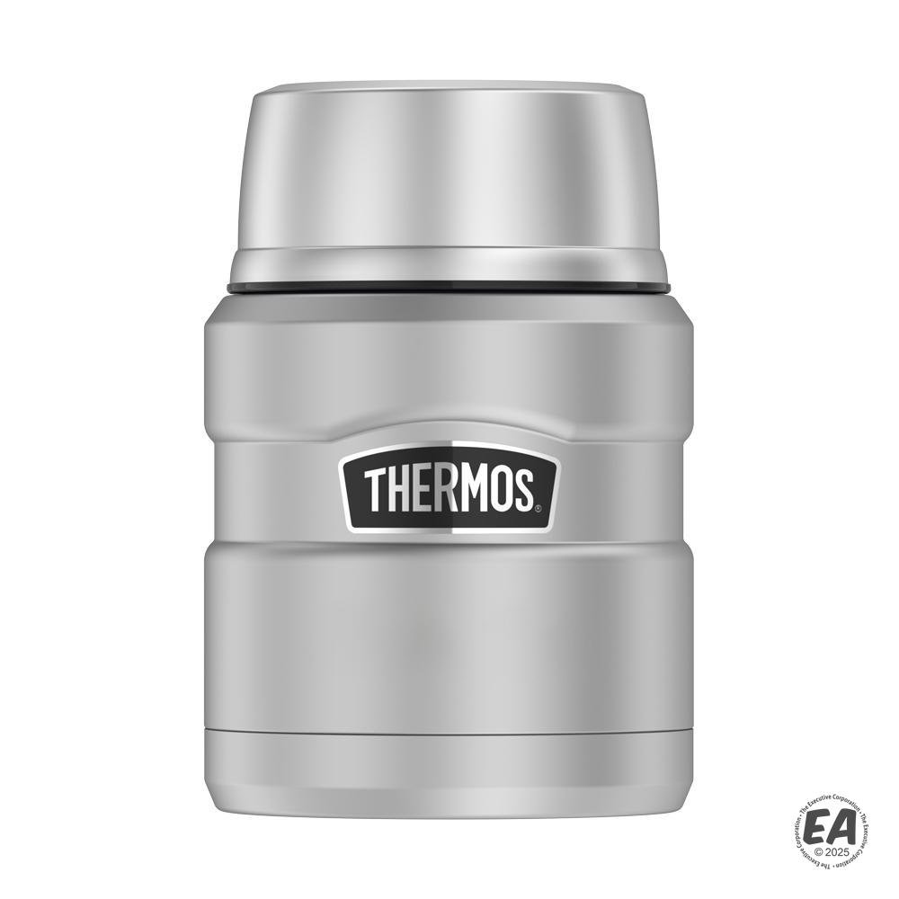 The Stainless King™ 16-ounce Stainless Steel Food Jar rules for taking the food you love anywhere. Keep fresh fruit and vegetables cool for up to 14 hours while you take on the day. For your favorite hot soups or oatmeal, every sip stays piping hot for up to 9 hours. Your options are endless. Count on Thermos™ vacuum insulation to keep weather out and the delicious in. It's easy to fill, easy to clean and comes crowned with a built-in serving bowl lid. As a bonus, you get a full-sized folding stainless steel spoon that fits right into the lid.Thermos makes high performance and durable food jars fit for a king – or queen. Constructed with double wall stainless steel, this insulated food jar is durable and designed to have a contoured shape that's easy to grip.