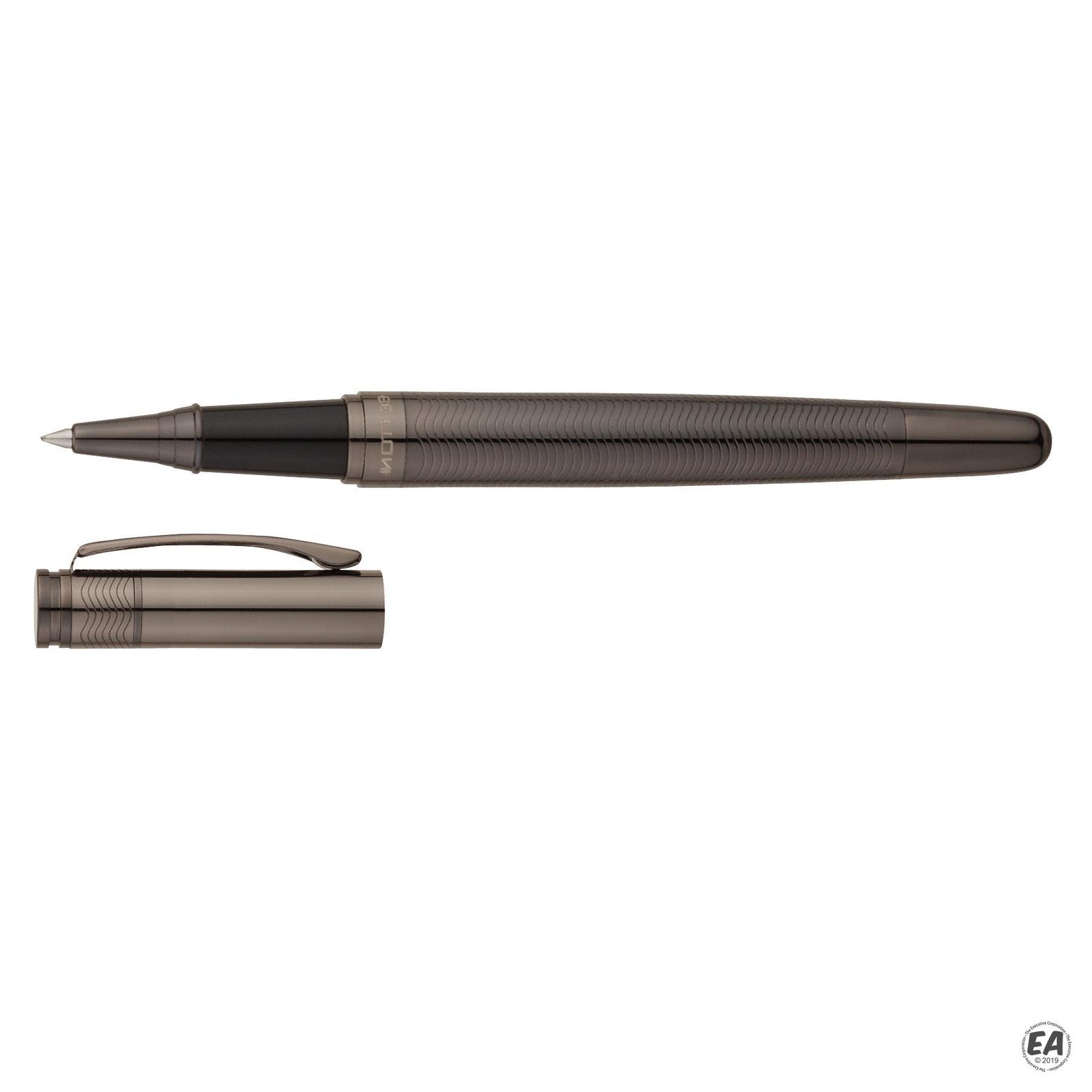 The Bettoni Abbracci brass cap-off rollerball pen is gunmetal plated with high-gloss lacquered finish, German-made rollerball refill, and the etched ridges make it a pleasure to hold.