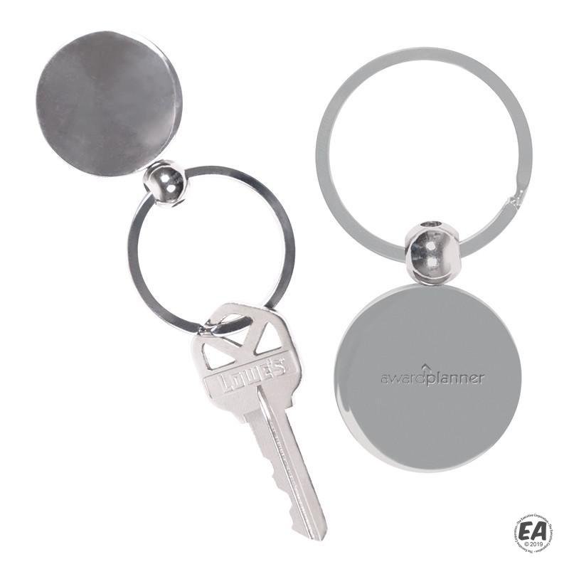 Customized Brushed Chrome Round Metal Key Chain and other Promotional Key Tags with free setups (see