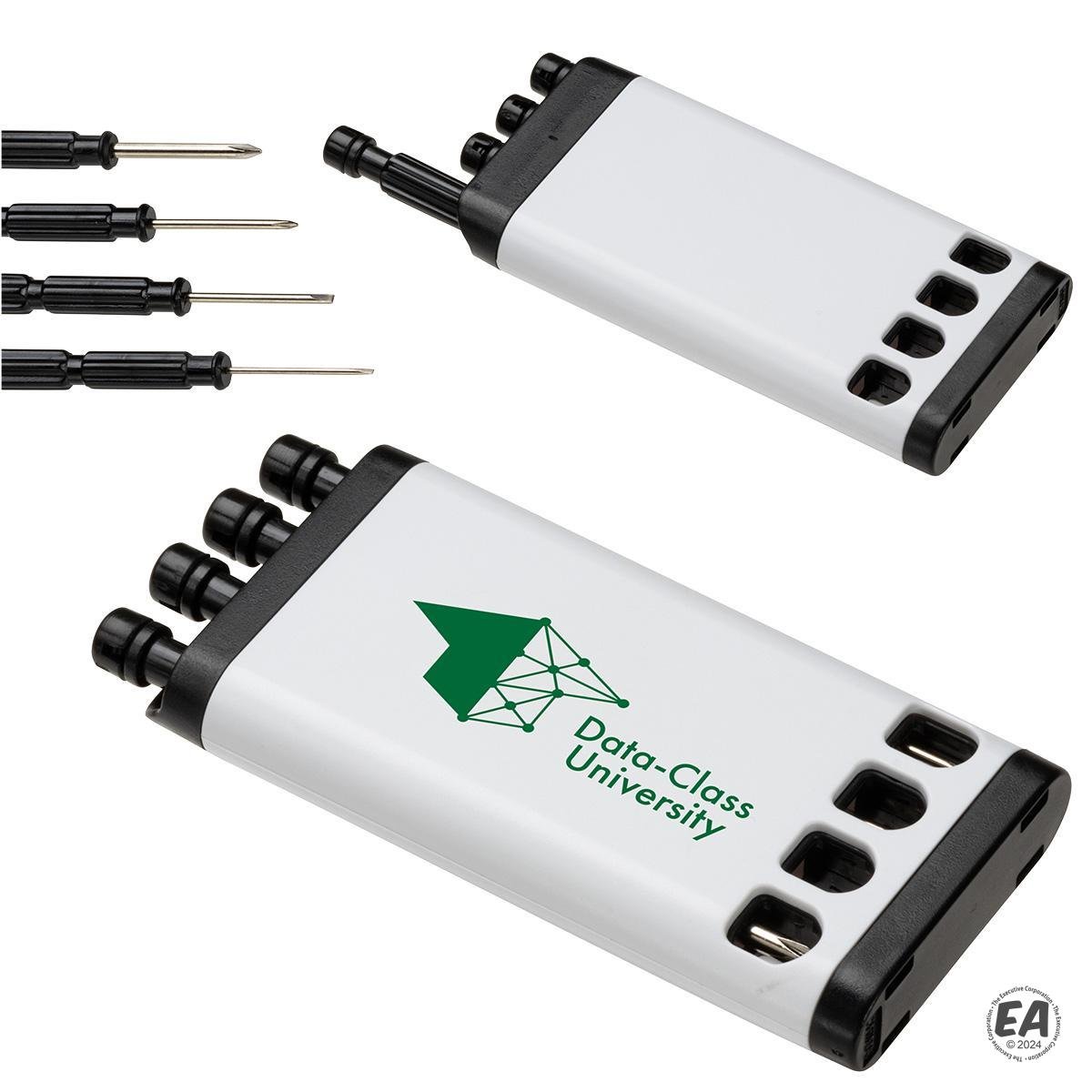 Includes four mini screwdrivers: 2 flat and 2 phillips head
