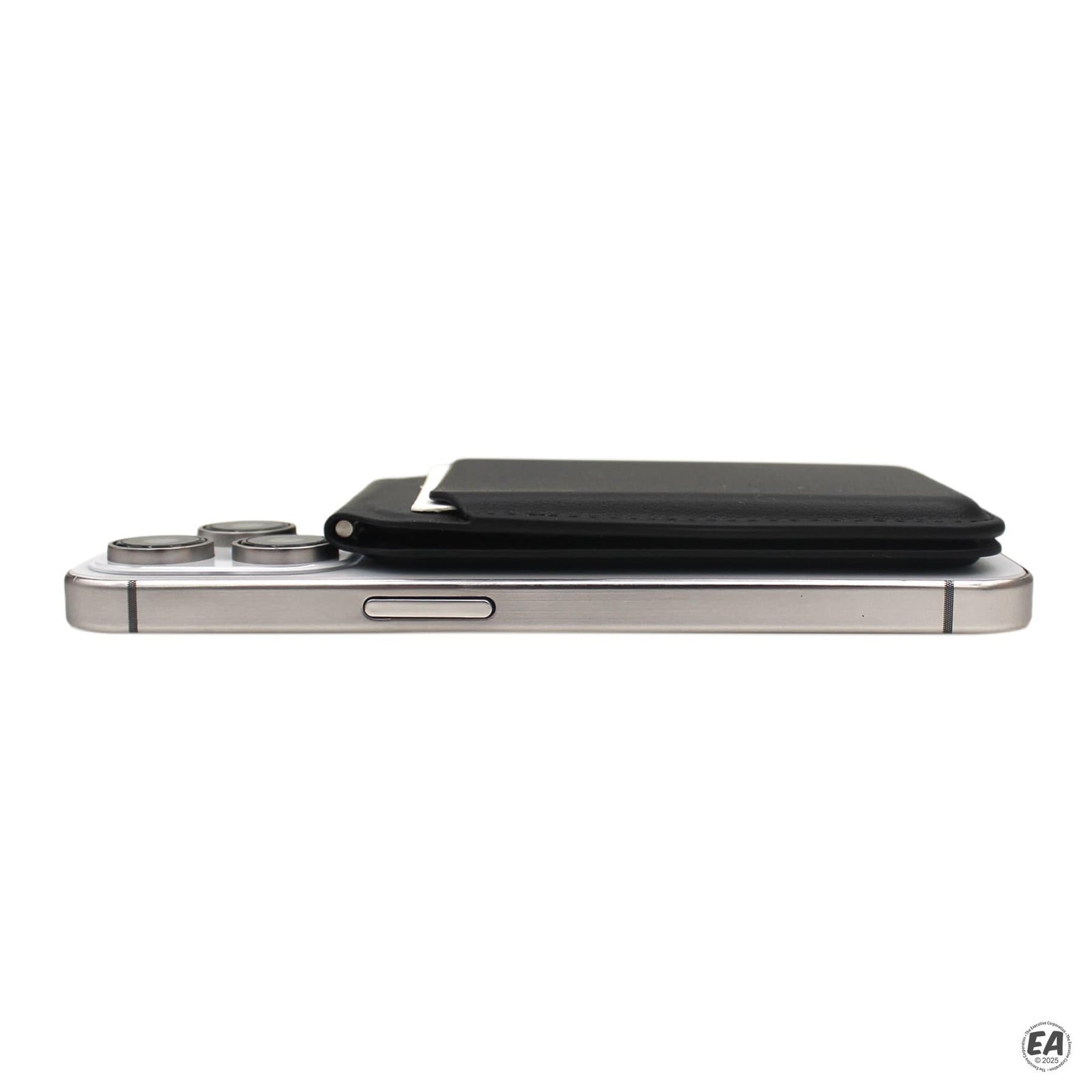 The iMobile Wallet Pro for MagSafe combines style and functionality. Crafted from premium vegan leather, it magnetically attaches to your phone, holding up to 6 cards for easy access. With its clever design, it doubles as a phone stand, perfect for hands-free viewing on the go. Slim and durable, this wallet adds convenience and elegance to your everyday essentials while maintaining a compact profile. Perfect for modern lifestyles! Magnetic ring adapter included.