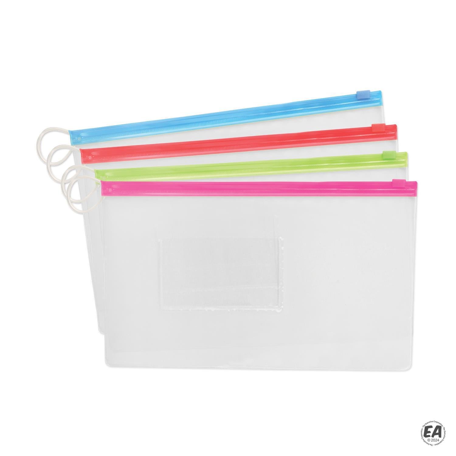 Our large vinyl pouches feature a slot for inserting your business card. Fill them with logo'd items and you'll really make an impression. Comes in assorted colors.