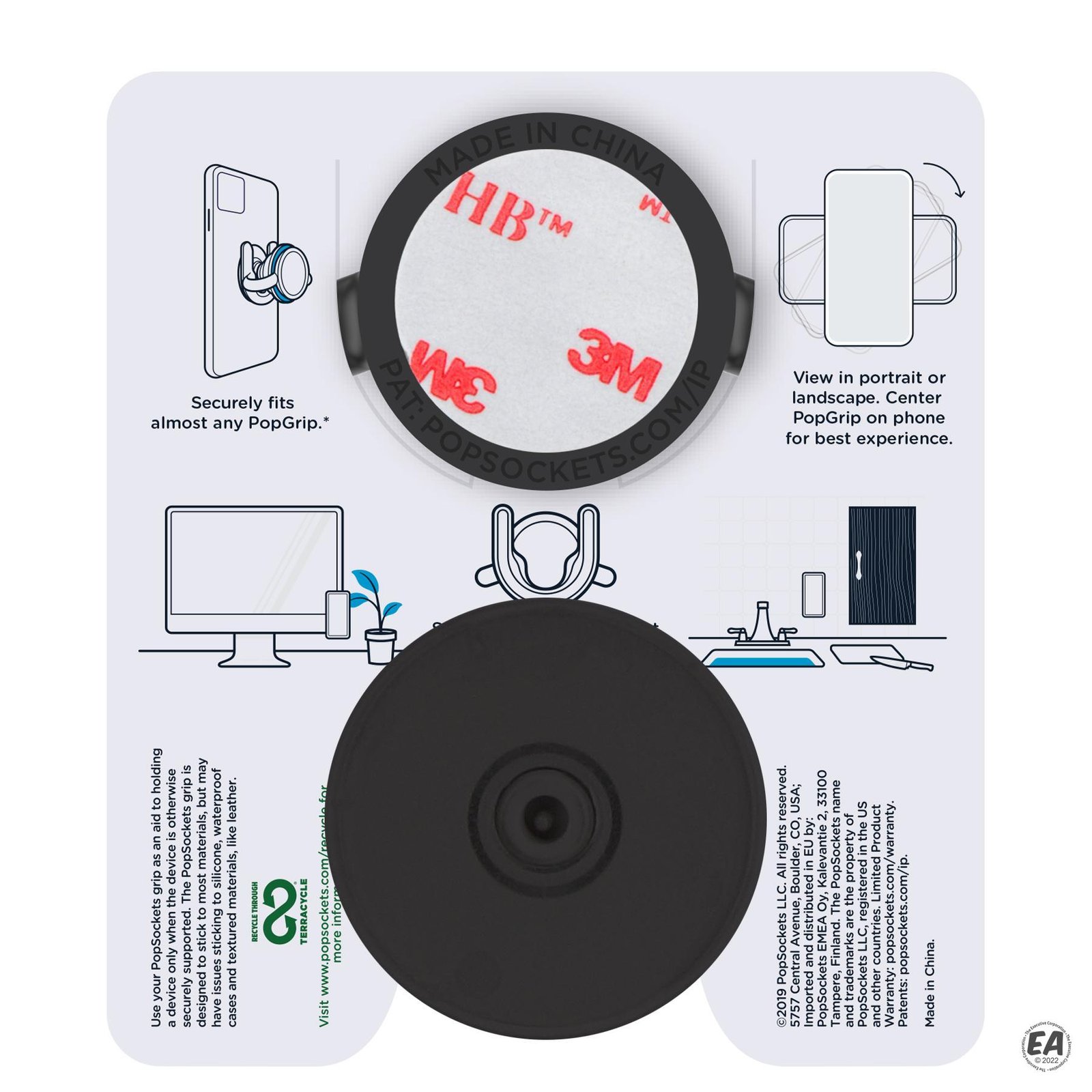The Surface Mount enables you to attach your cell phone to your dashboard, wall, or locker using your PopGrip. Your PopGrip will snap easily into and out of your mount, enabling hands-free viewing. The mount sticks to surfaces with a single-use 3M VHB adhesive; it can be removed without leaving any residue with fishing line or dental floss.
