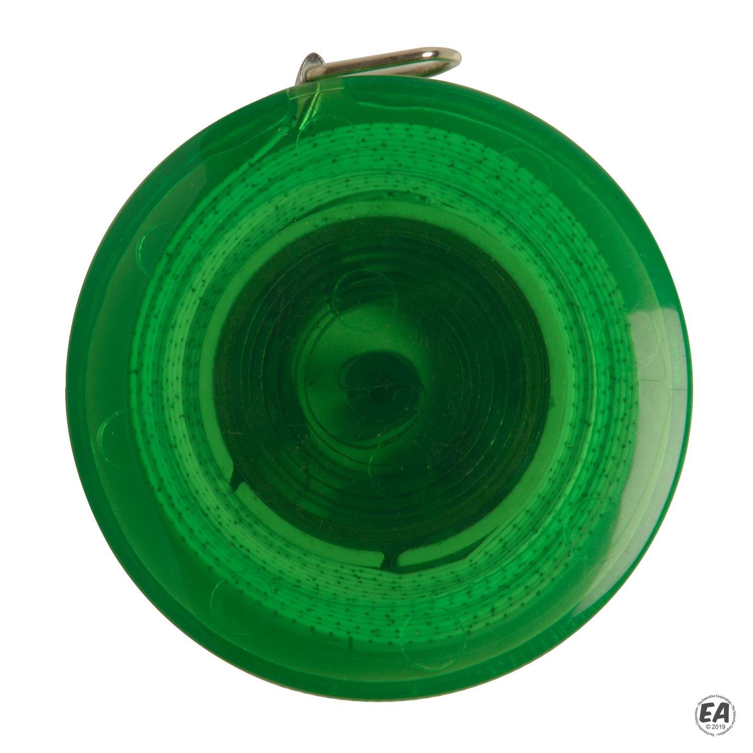 Round design with an easy-to-read 5' cloth tape features metric/inch scale