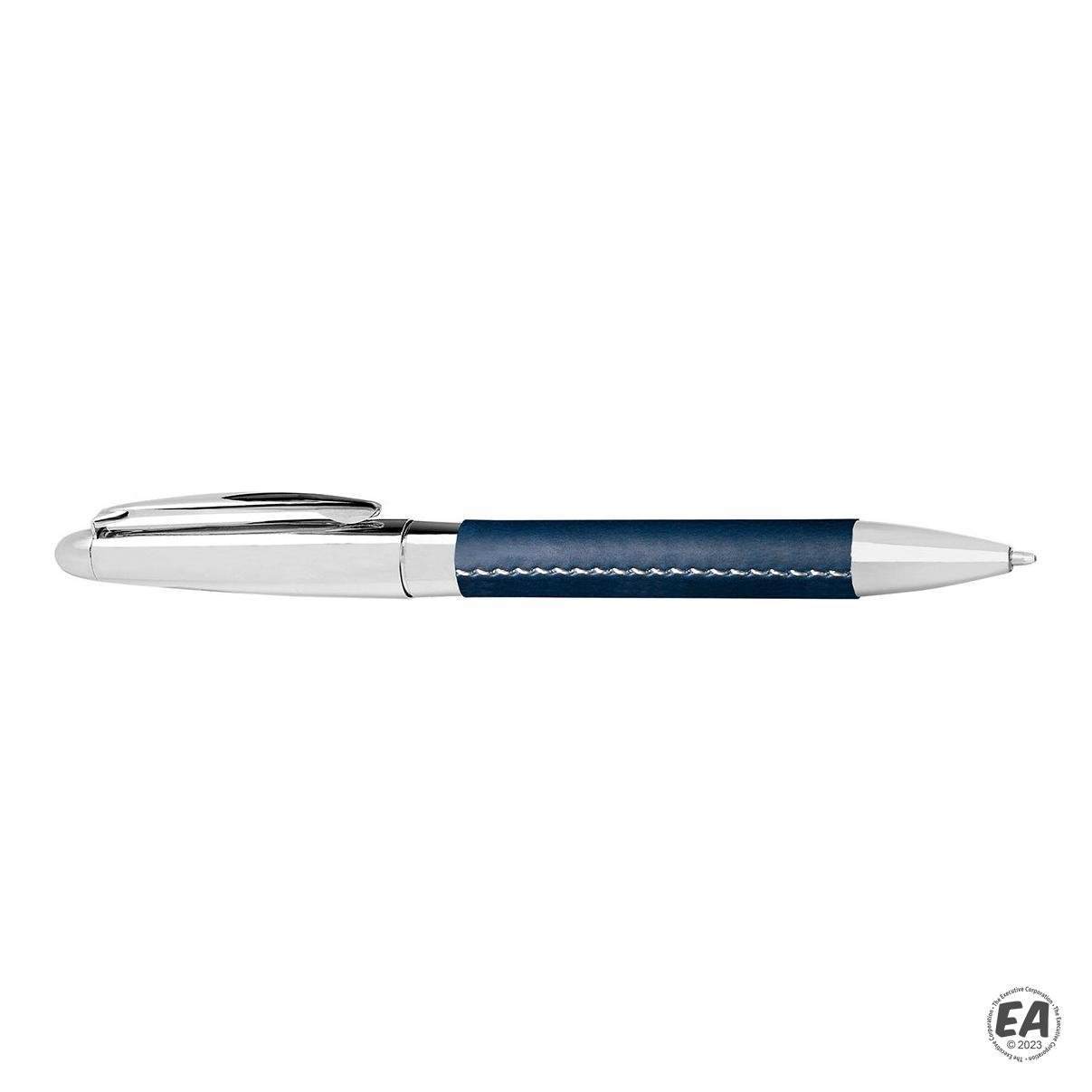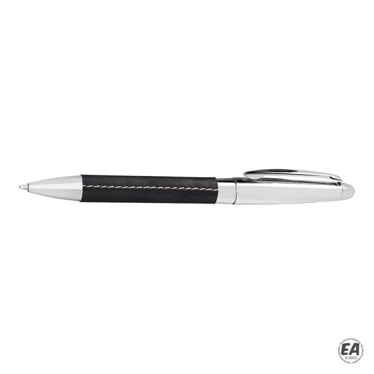 Twist-action stainless steel ballpoint pen with Faux leather-wrapped body